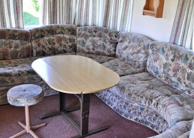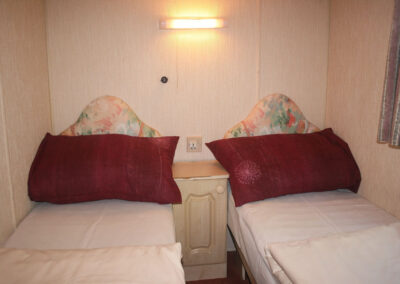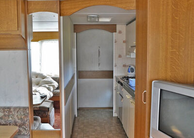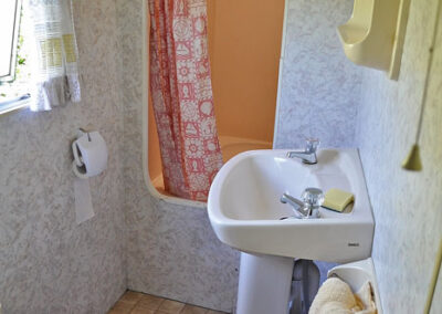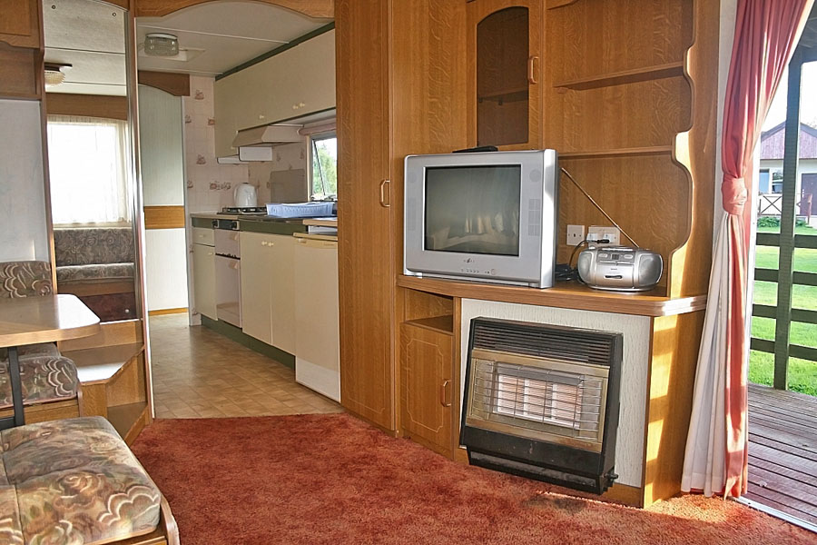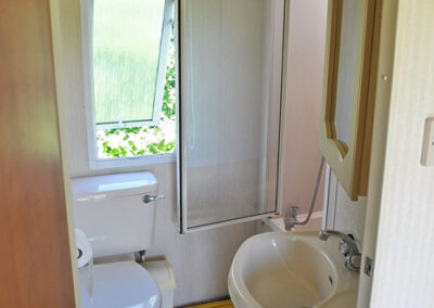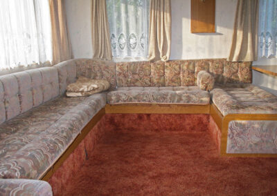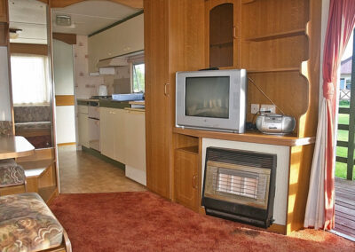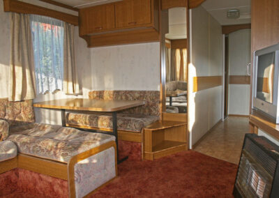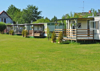 5 domków holenderskich – pełen węzeł sanitarny, 1 sypialnia z łózkiem małżeńskim. 2 sypialnia z 2 łóżkami. Salon z kominkiem gazowym, narożnik z funkcją spania dla 2 osóbw, tv.
